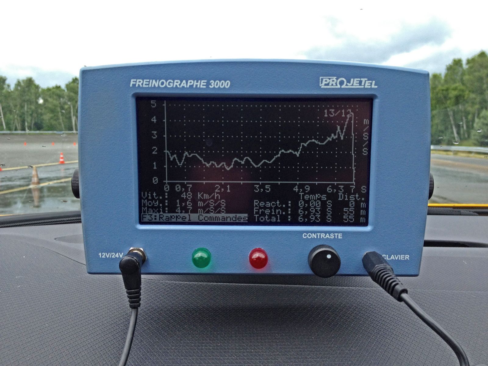 Le freinographe pour se rendre compte de la puissance du freinage. Plus la courbe est élevée, plus le freinage est fort