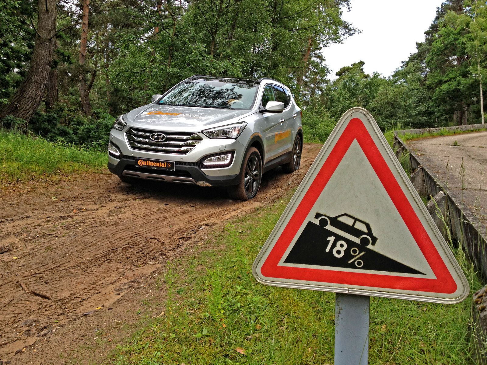 Au tour du Hyundai Santa Fe d’être pris en main avec ses pneus prévus pour sortir des routes goudronnées : les ContiCrossContact LX Sport