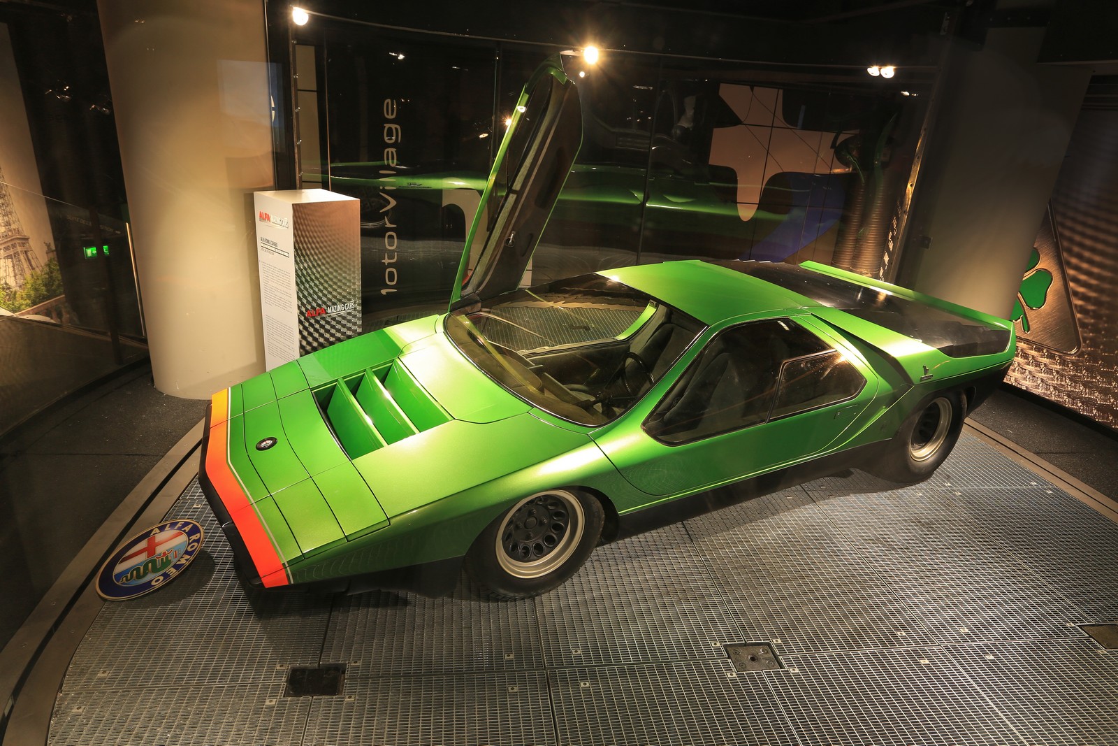 Deux concept-cars sont par la même occasion exposés avec notamment le concept Carabo de 1968 dessiné par Marcello Gandini qui marque une rupture de style avec les habituelles formes rondes. Il est présenté par le studio de design de Bertone au Salon de Paris de 1968. Cet ovni repose sur la base technique de la 33 Stradale et est propulsé par un moteur V8 de 230 ch permettant d’afficher une Vmax de 260 km/h !