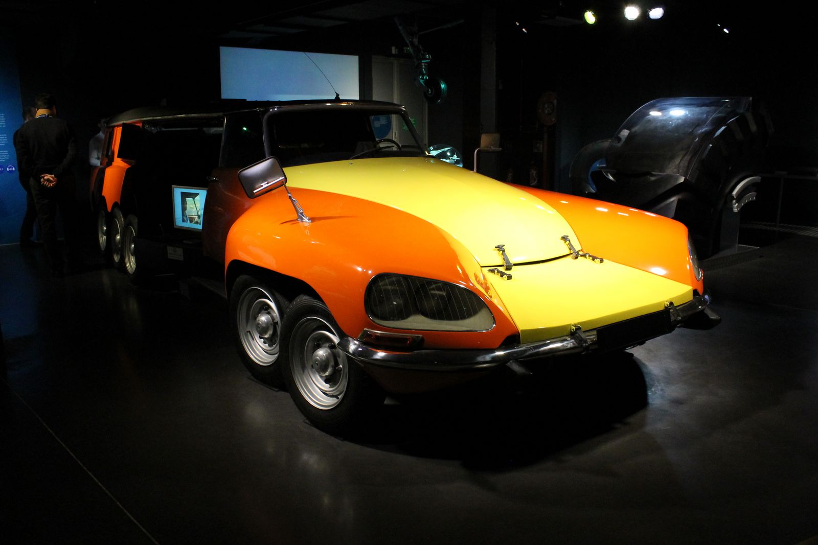 Cette Citroën DS allongée (avec deux V8 Corvette dans le coffre !) avait pour nom le « millepattes » à cause de ses multiples roues dont plusieurs pour camion à l’intérieur. Le but était de tester ces pneus à haute vitesse