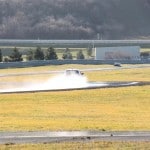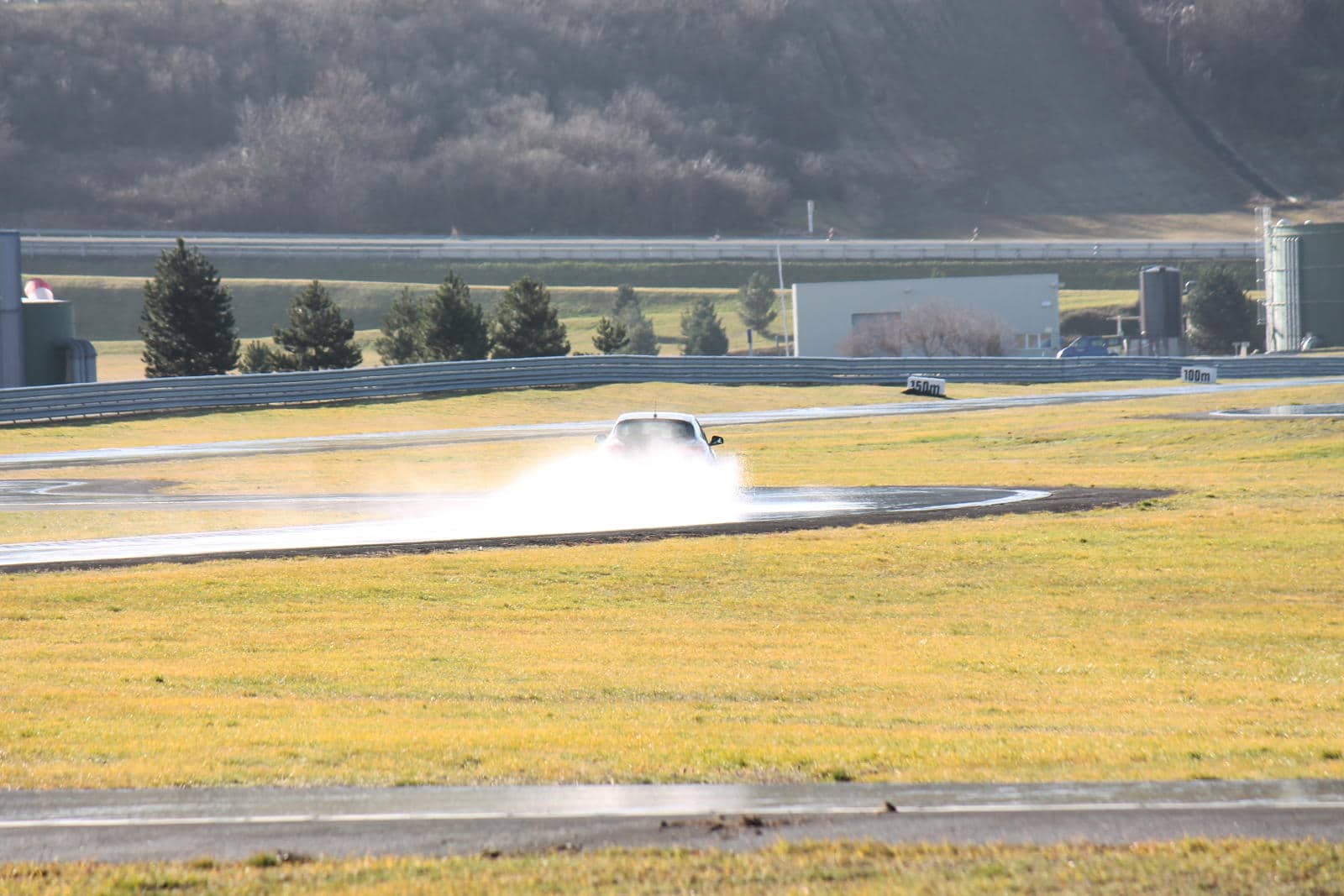 Ici, nous nous rendons sur un grand circuit surnommé le « canard » à cause de son tracé ressemblant à l’oiseau aquatique. Le but est de se rendre compte de la différence de grip apportée par un pneu hiver, notamment en courbe.