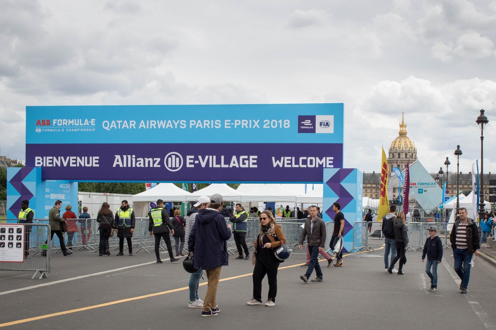 L’entrée du E-Village pour assister au ePrix de Paris aux Invalides
