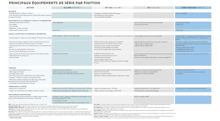 Une gamme et des versions identiques, avec cinq niveaux de finition qui ne bougent pas ; Access en entrée de gamme, Active, Allure, GT et le haut du panier : Féline. Une nouveauté tout de même : les motorisations avec l’arrivée de 2 nouveaux blocs sous le capot de la nouvelle 508 :