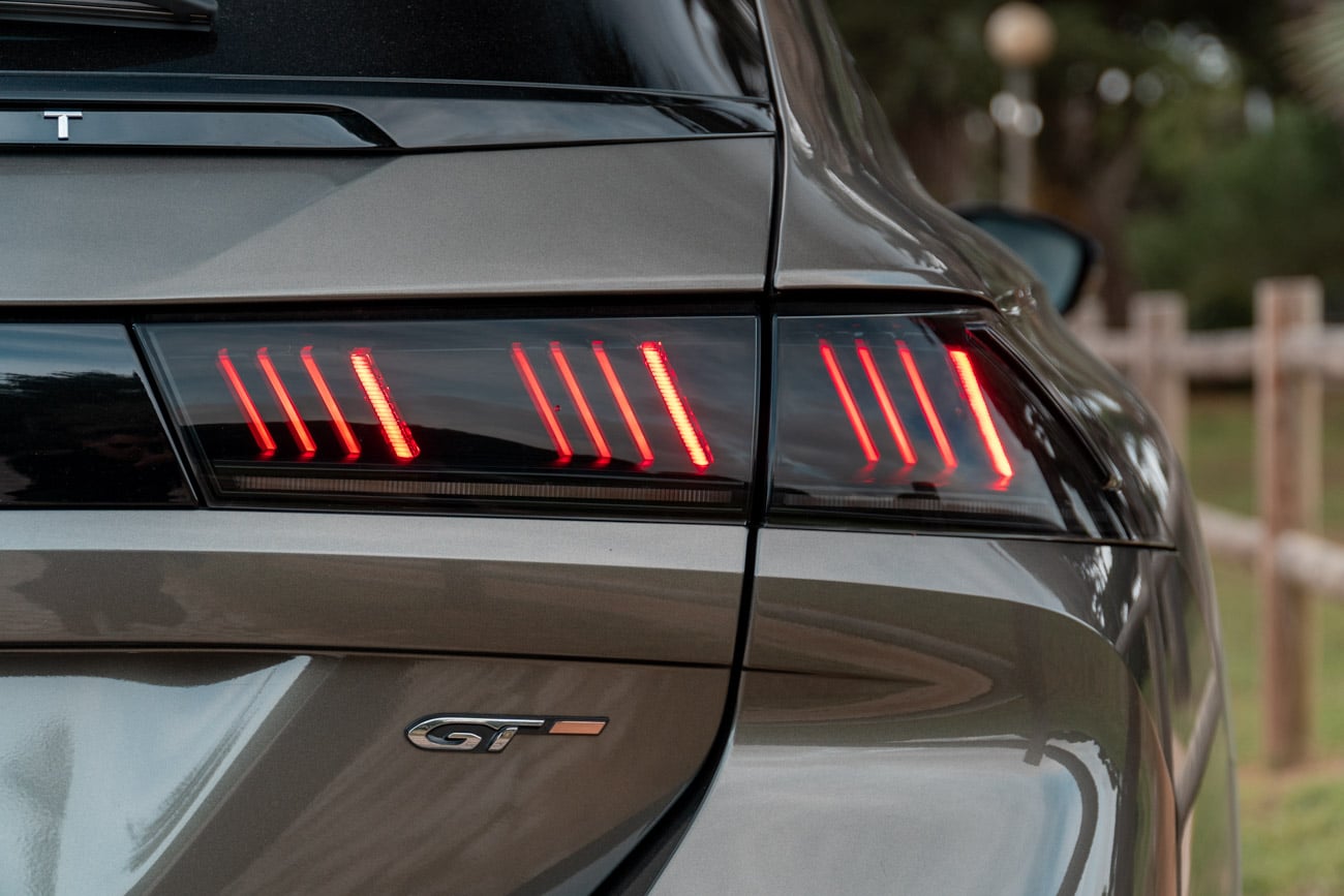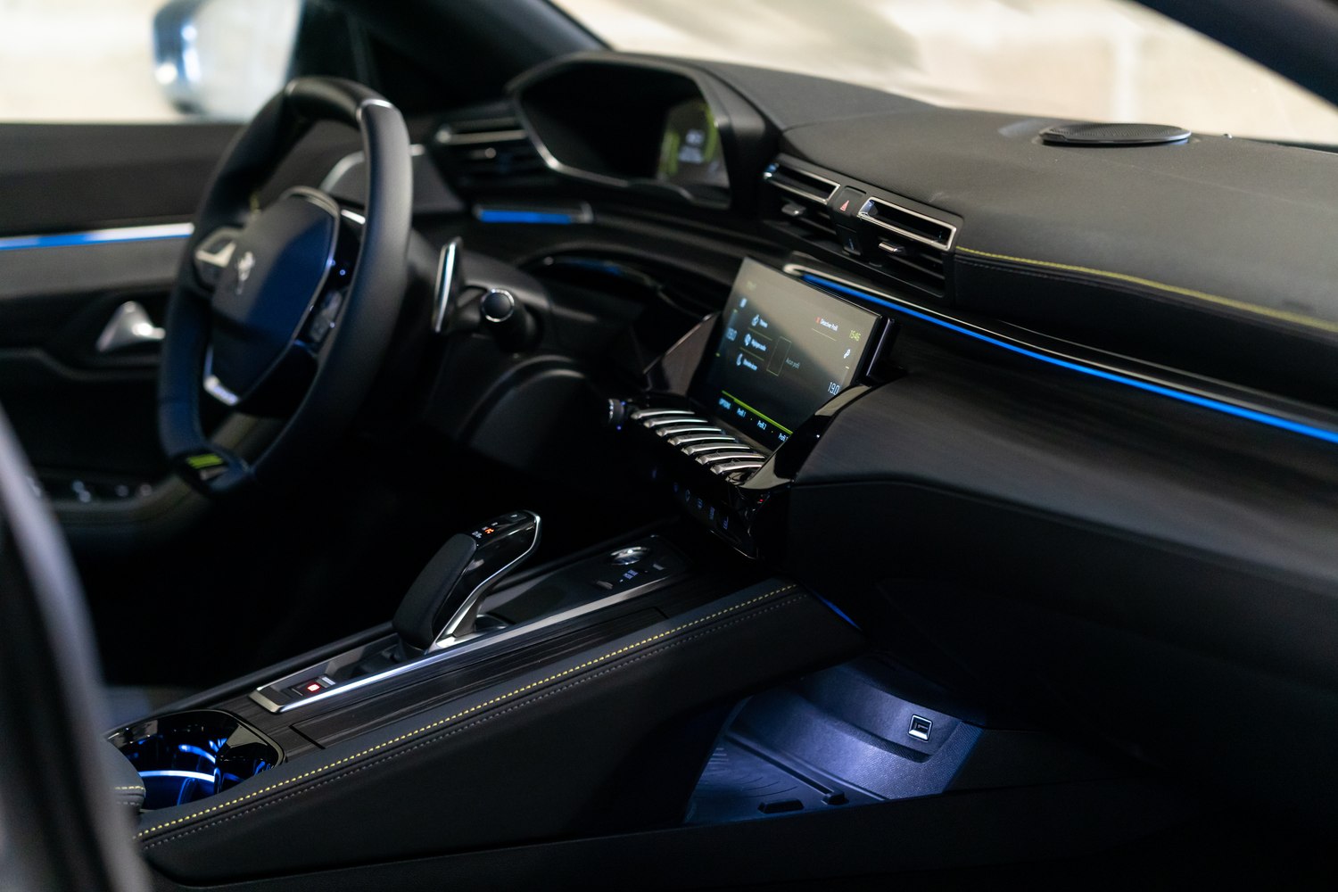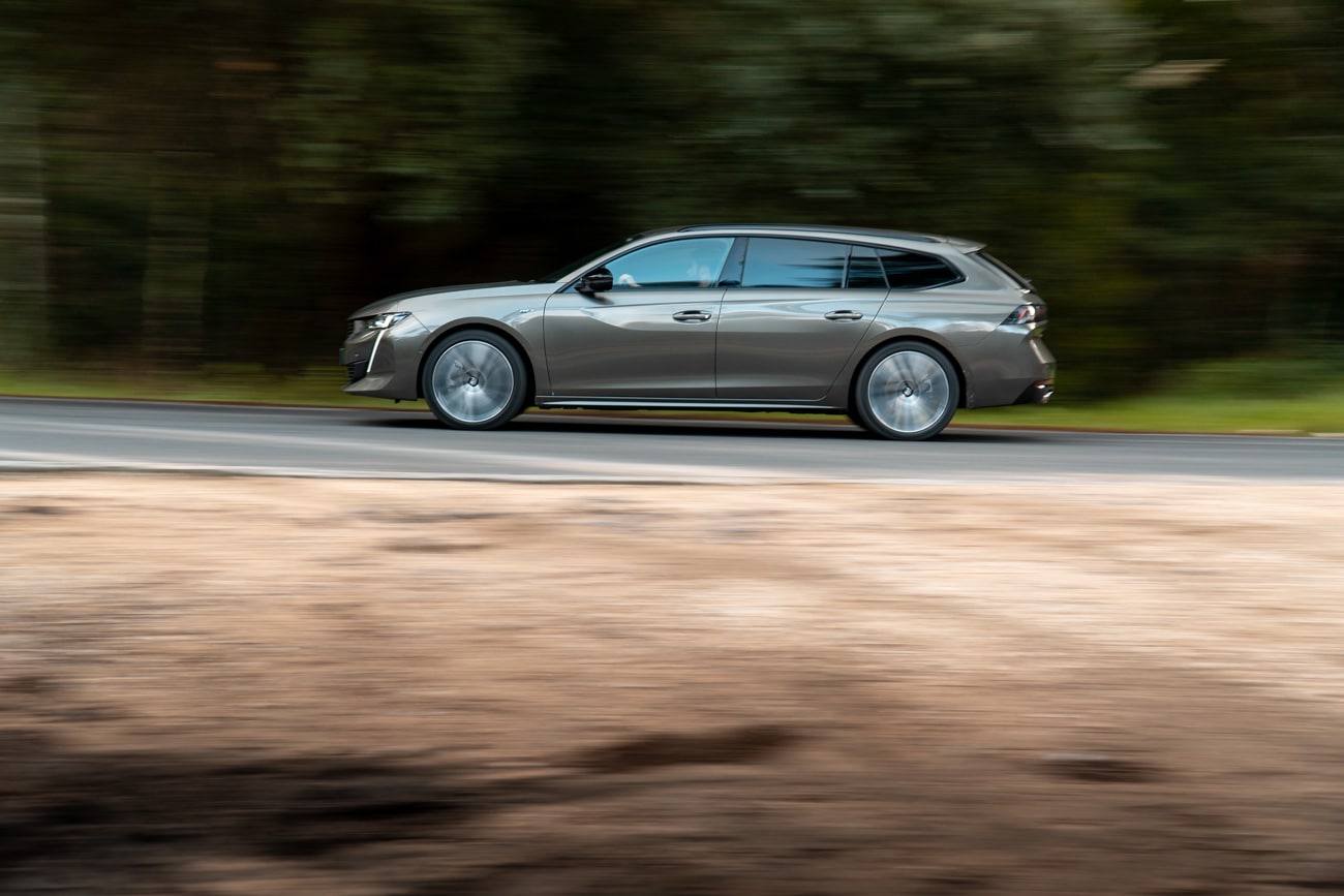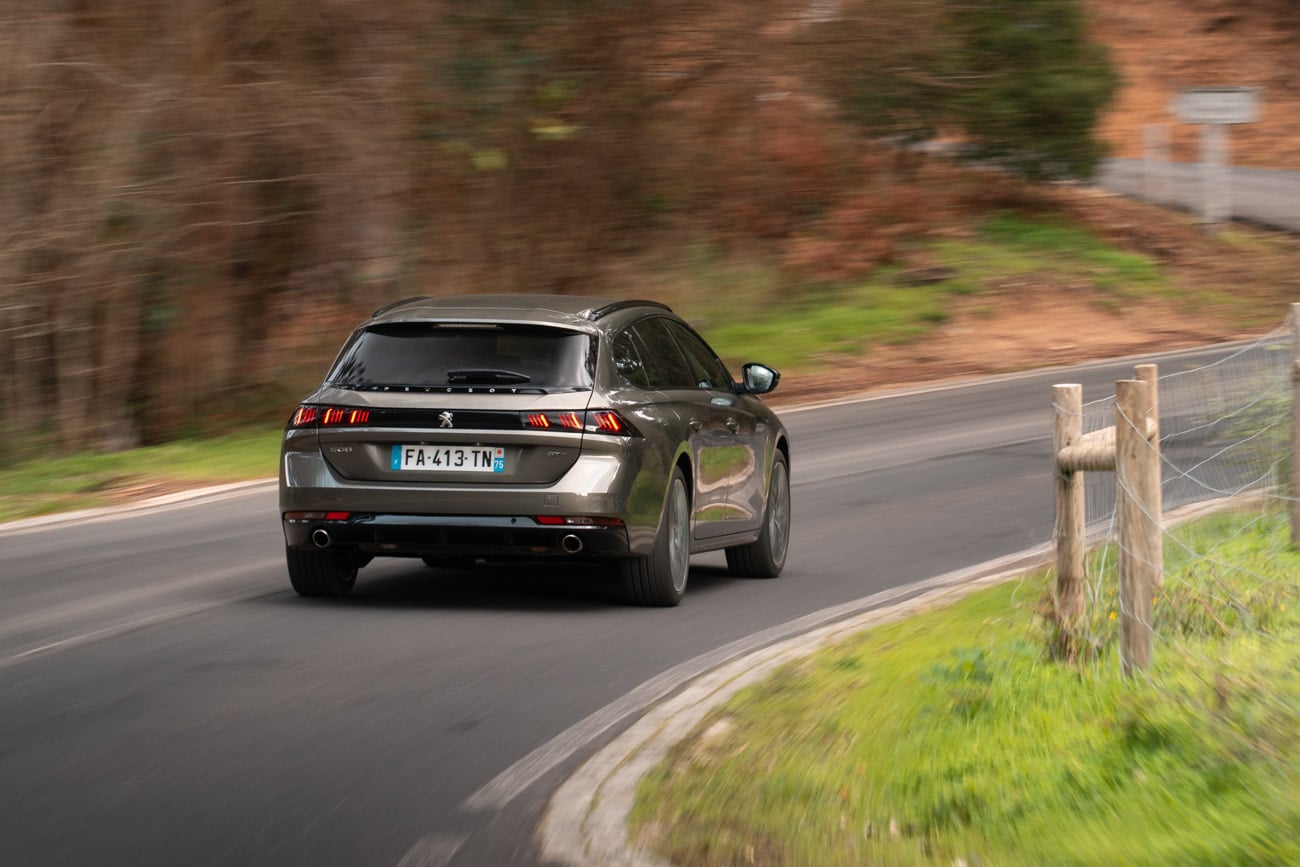 80 kilos séparent ma monture du jour de la 508 GT essayée cet été. C’est imperceptible en conduite normale, notamment parce que malgré l’embonpoint et l’allongement, l’empattement reste le même. La SW se montre donc aussi agréable à emmener que la berline et son châssis fait preuve d’un bel équilibre tout en gardant ce savant mélange entre confort et dynamisme. Il n’y a que dans le très sinueux qu’elle avoue ses limites et me rappelle que son truc à elle, c’est avant tout de pouvoir tracer la route avec sérénité quelles que soient les conditions. Une utilisation qui convient d’ailleurs parfaitement au moteur essence PureTech de 225 ch disponible en finition GT. Le 4-cylindres 1.6 turbo est volontaire, doux et très souple, à défaut de disposer d’un caractère de feu. Même combat pour la boîte EAT8 qui préfère de loin cruiser et égrainer ses rapports en toute discrétion plutôt que vous lui forciez la main via les palettes fixes derrière le volant.
