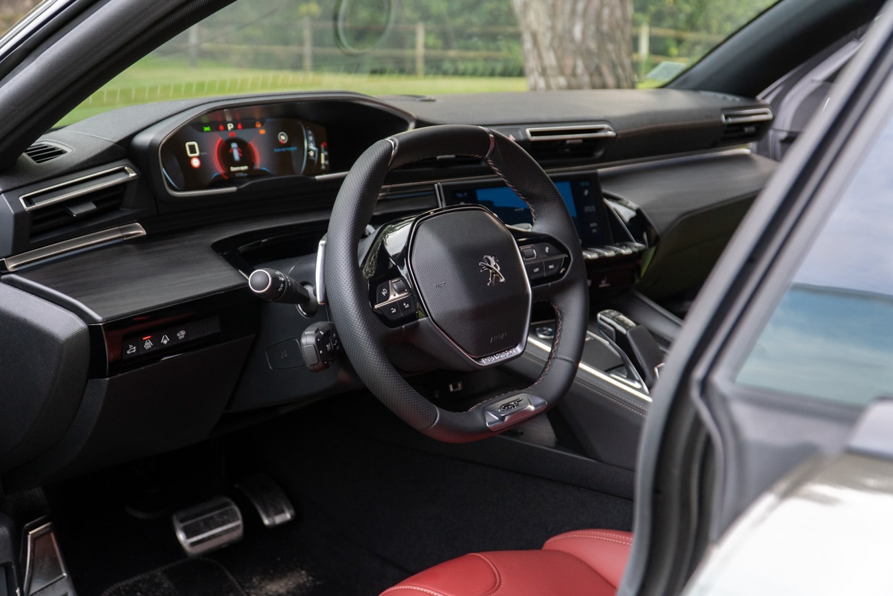 Alors que de nombreuses voitures ont aujourd’hui tendance à tout faire pour se surélever, il est agréable de « tomber » dans les sièges de la 508 et de se retrouver assis assez bas. On se retrouve bien calé derrière le i-cockpit qui n’a jamais aussi bien porté son nom. Confortablement installé, on profite du petit volant et de l’instrumentation numérique paramétrable.
