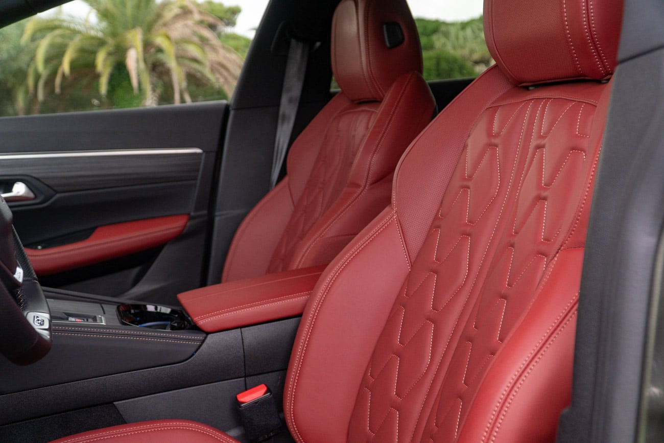 Reste que le look global est très réussi, en témoigne les nombreux regards admiratifs croisés lors de l’essai, même si l’on peut regretter que l’intérieur ne suive pas la même tendance. Ce dernier reste en effet identique à celui d’une 508 hybride classique, si l’on excepte les quelques badges PSE et une sellerie multi-matière très travaillée.
