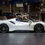 Ferrari apporte de Modène la fameuse 488 Pista en version découvrable. La Pista Aperta se dévoile dans une sobre couleur blanche, toutefois agrémentée de son bandeau central bleu pour la sportivité. Et du sport, elle en est capable ! Avec son V8 de 720 chevaux et son aérodynamisme particulièrement travaillé, la 488 Pista Aperta ultime promet des performances décoiffantes.