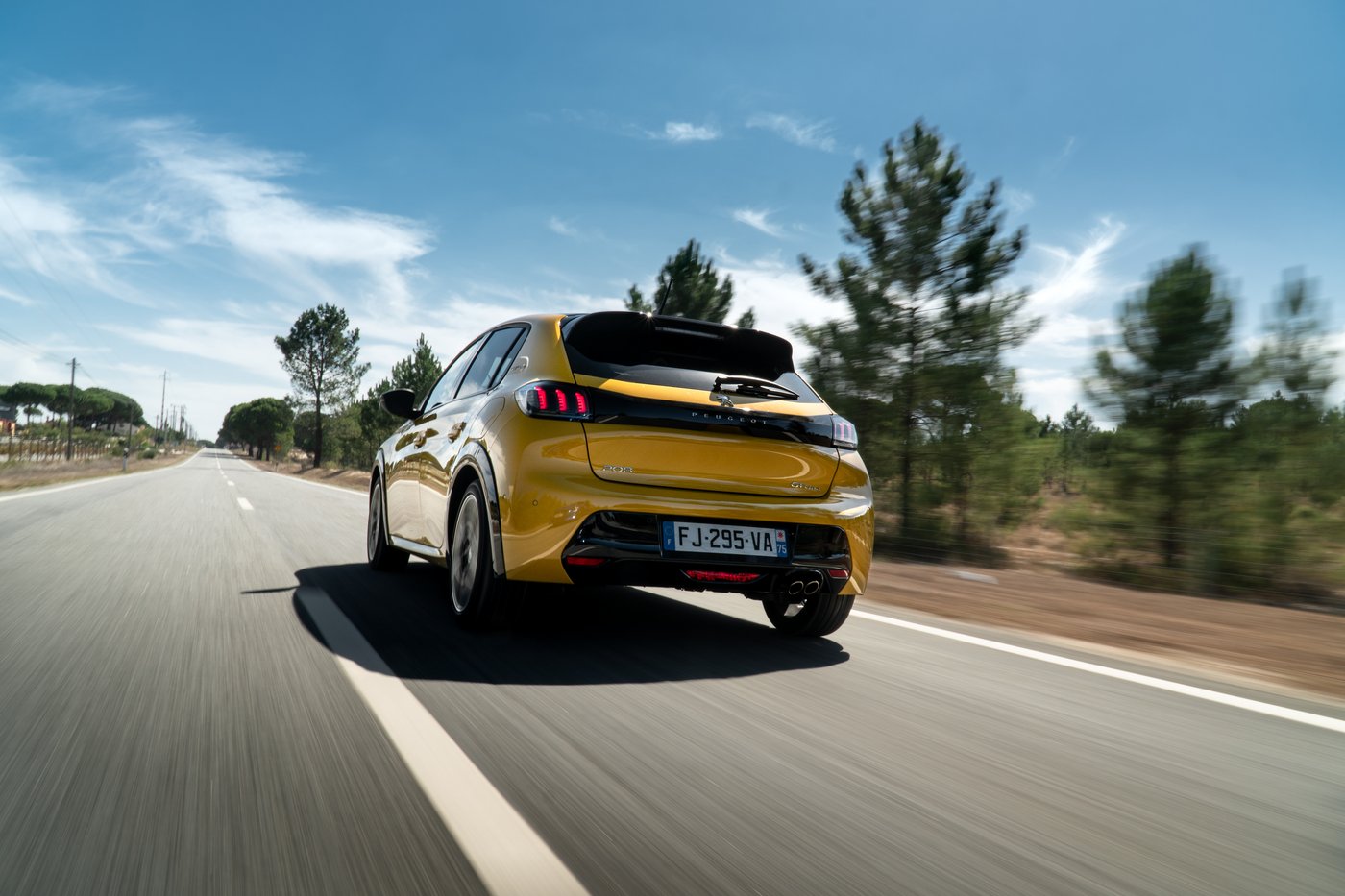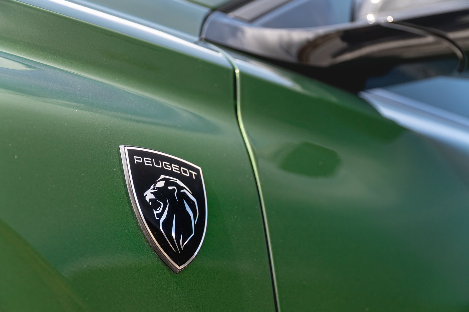 À l’arrière, la lunette arrière est donc fortement inclinée. Elle est surmontée d’un aileron « flottant » donnant l’impression d’avoir des oreilles de félins. La signature lumineuse reprend les trois griffes et se place entre un bandeau noir intégrant l’inscription Peugeot en toutes lettres peinte en Gris Meteor. De même, la dénomination du modèle au centre du hayon, très vertical, est aussi dans cette couleur. Peugeot a voulu bannir le chrome de son auto.